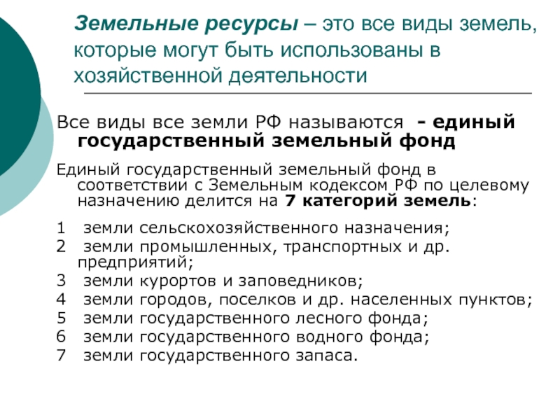 Слайд 3Земельные ресурсы – это все виды земель, которые могут быть