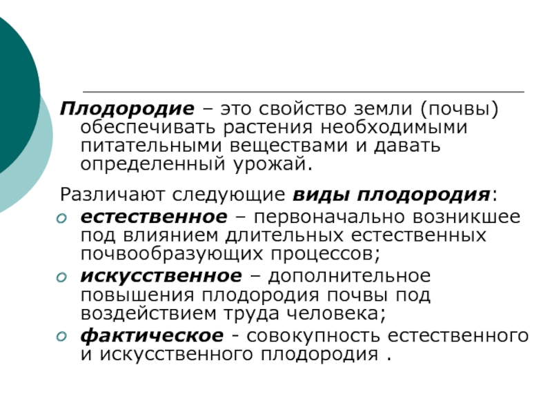Слайд 9Плодородие – это свойство земли (почвы) обеспечивать растения необходимыми питательными
