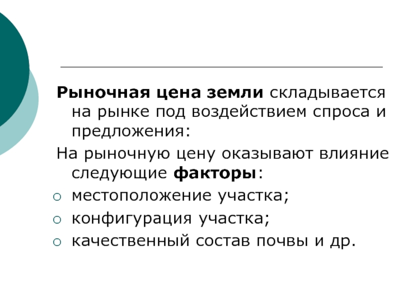 Слайд 10Рыночная цена земли складывается на рынке под воздействием спроса и