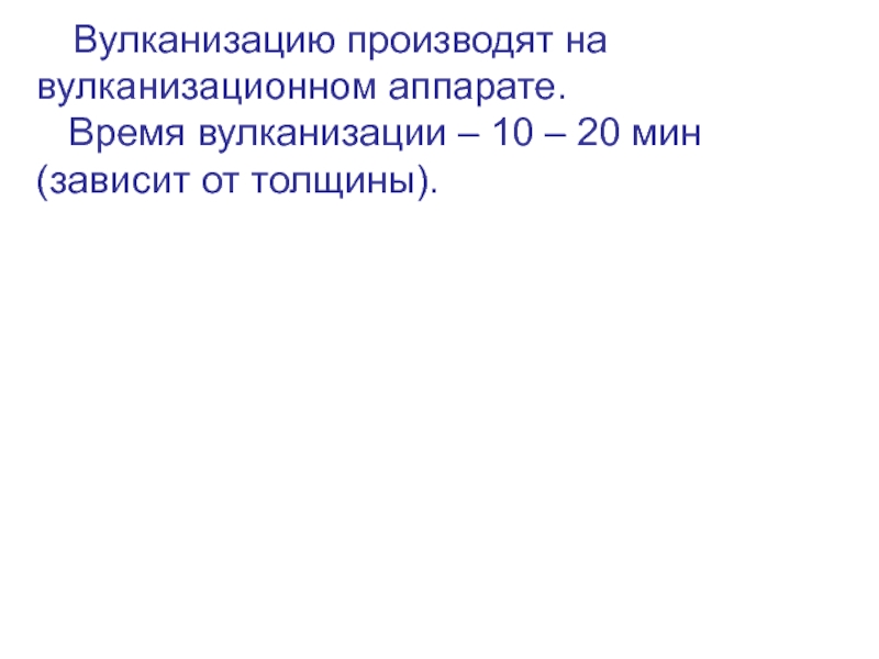Слайд 13 Вулканизацию производят на вулканизационном аппарате. Время