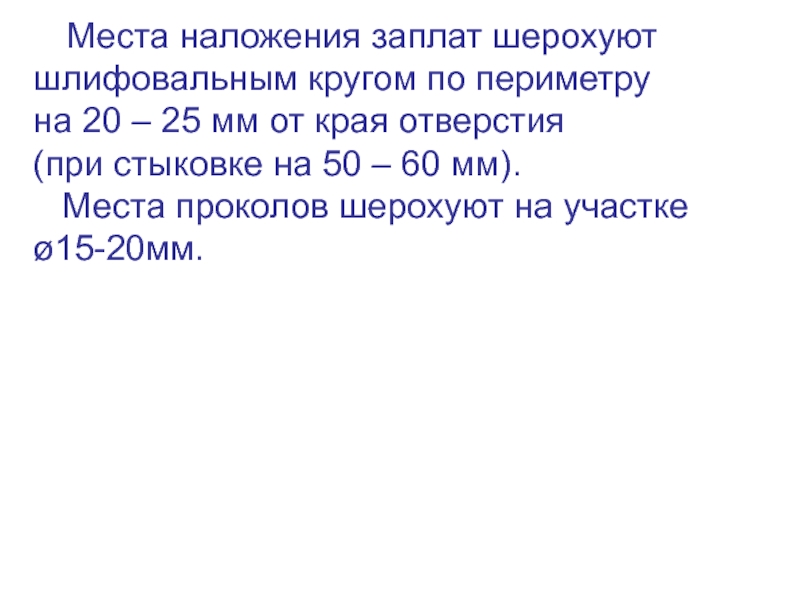 Слайд 10 Места наложения заплат шерохуют шлифовальным кругом по