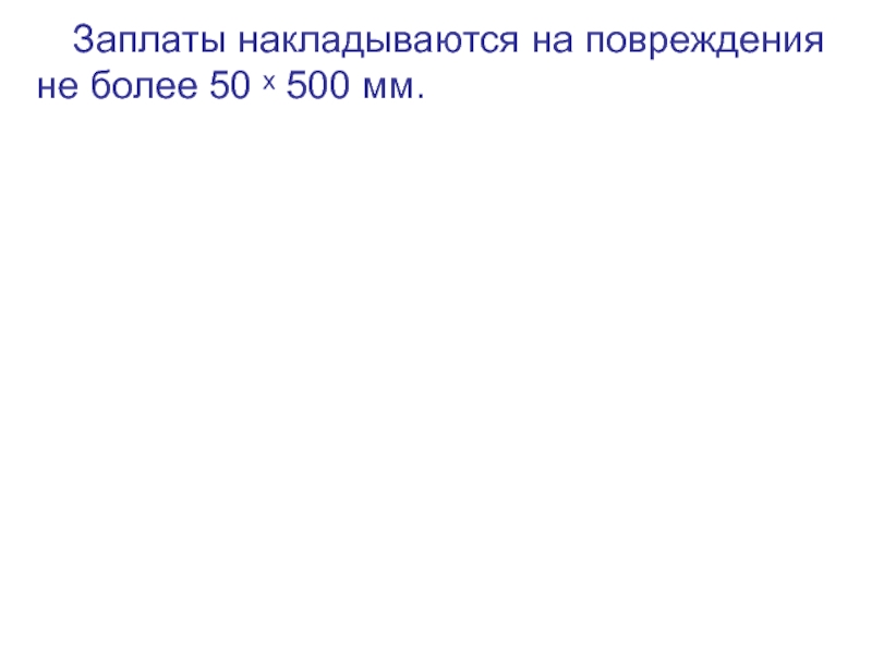 Слайд 8 Заплаты накладываются на повреждения не более 50