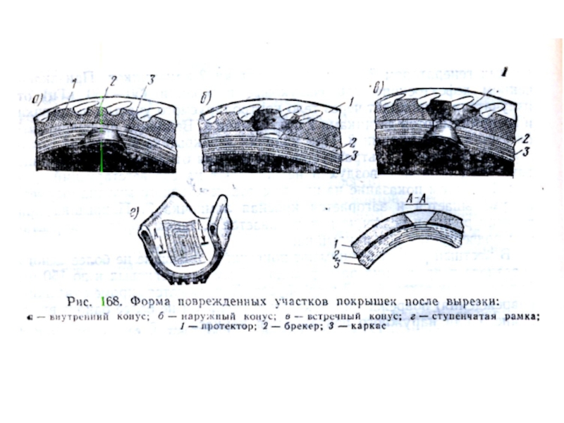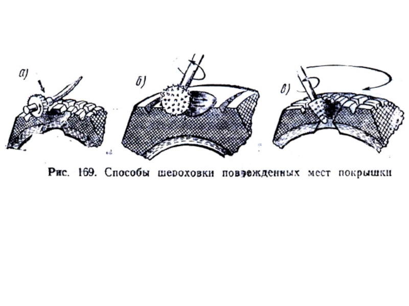 Покрышки.  Основные операции местного ремонта: - очистка - мойка - подготовка повреждённых участков