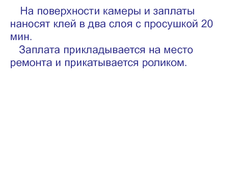 Слайд 12 На поверхности камеры и заплаты наносят клей