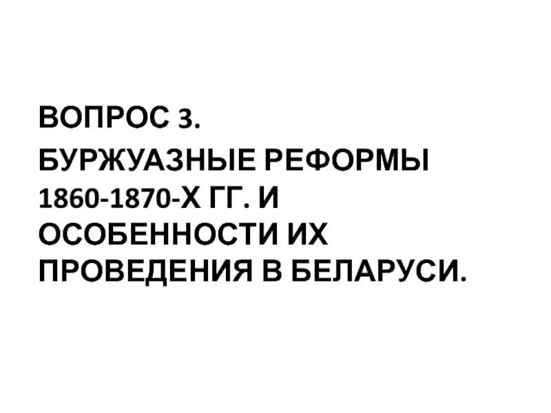 БУРЖУАЗНЫЕ РЕФОРМЫ 1860-1870-Х ГГ. И ОСОБЕННОСТИ ИХ ПРОВЕДЕНИЯ В БЕЛАРУСИ.