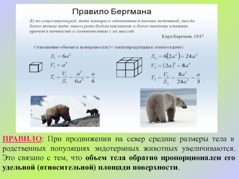 Слайд 19ПРАВИЛО: При продвижении на север средние размеры тела в родственных