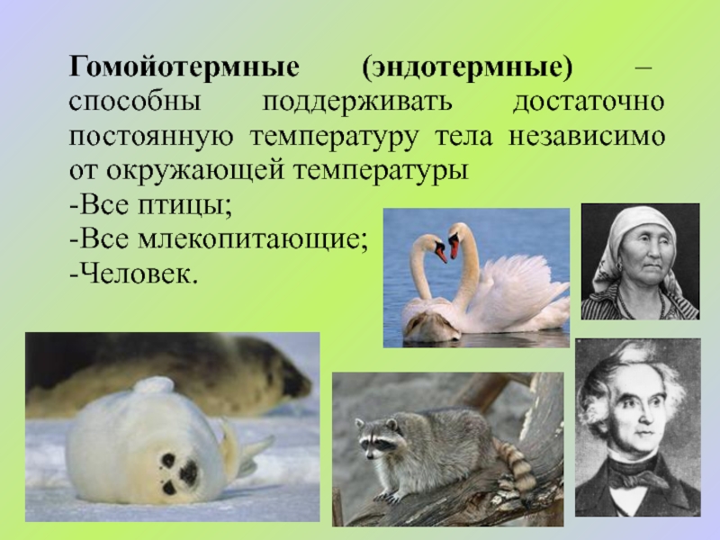 Слайд 15Гомойотермные (эндотермные) – способны поддерживать достаточно постоянную температуру тела независимо