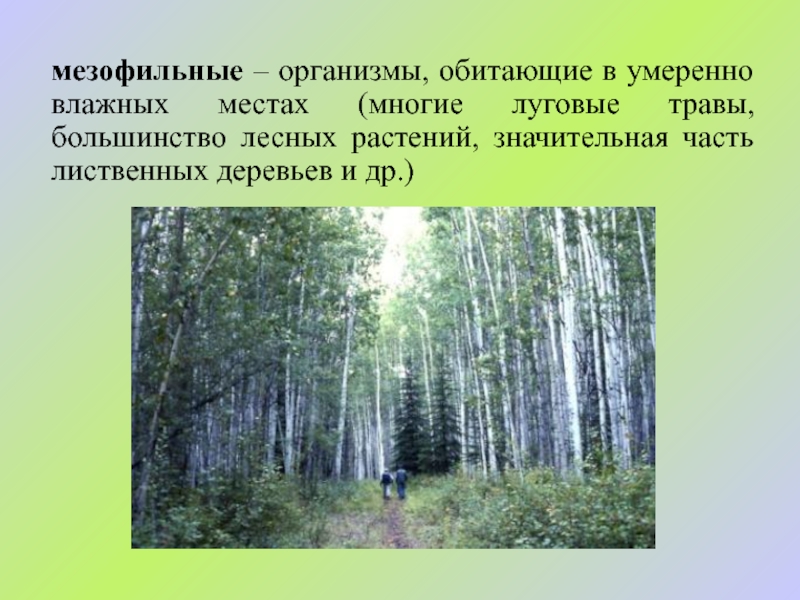 Слайд 26мезофильные – организмы, обитающие в умеренно влажных местах (многие луговые