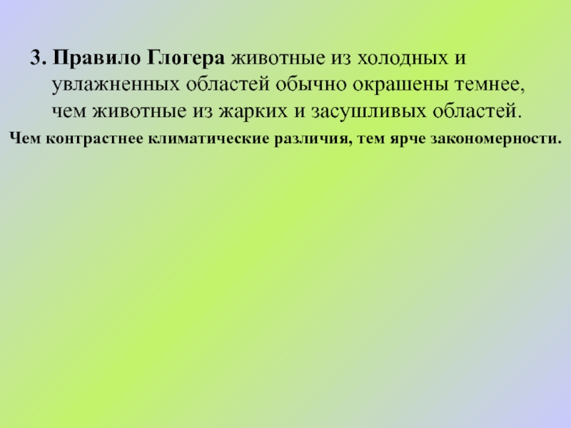 Слайд 223. Правило Глогера животные из холодных и увлажненных областей обычно