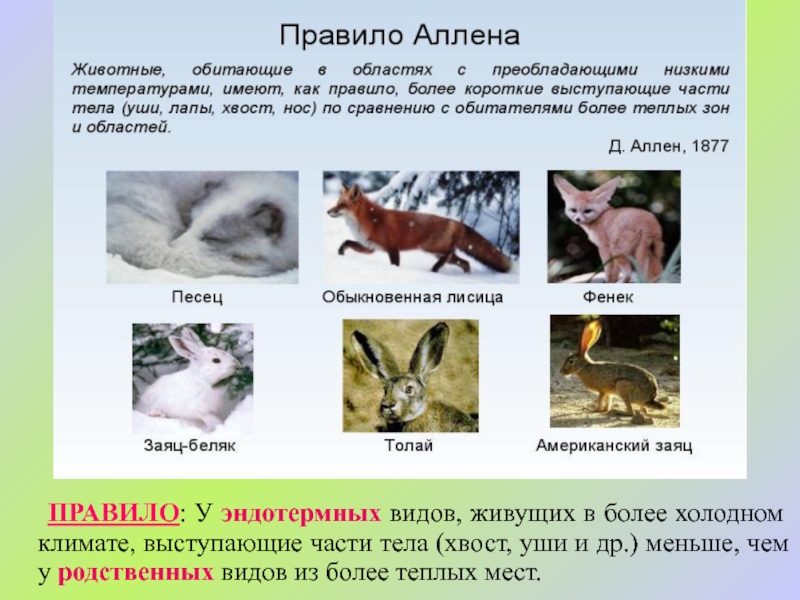 Слайд 20 ПРАВИЛО: У эндотермных видов, живущих в более холодном климате, выступающие
