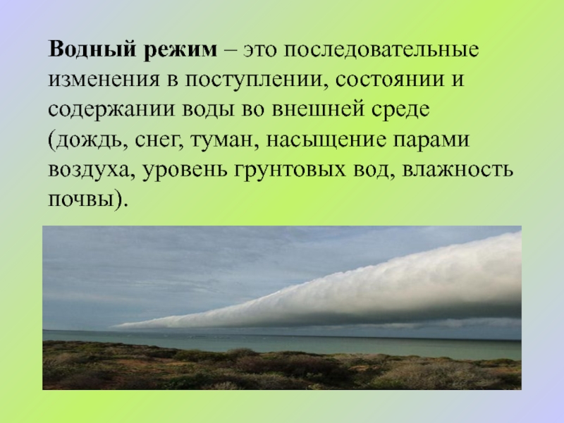 Слайд 24Водный режим – это последовательные изменения в поступлении, состоянии и