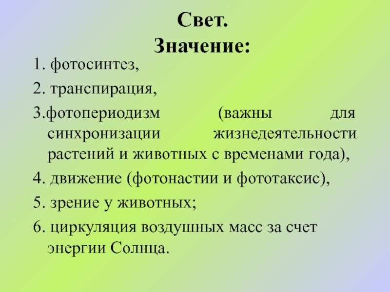 3.фотопериодизм (важны для синхронизации жизнедеятельности растений