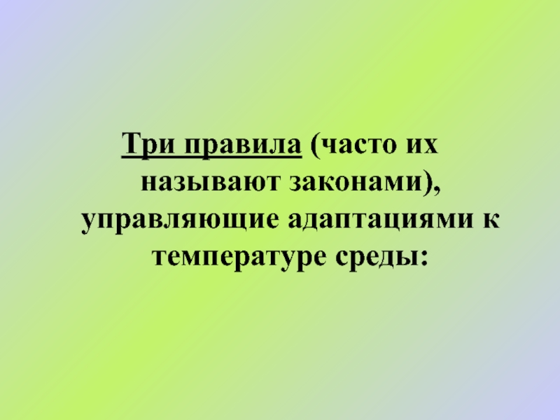 Слайд 18Три правила (часто их называют законами), управляющие адаптациями к температуре