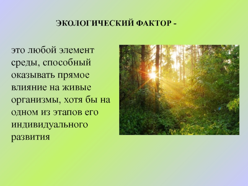 это любой элемент среды, способный оказывать прямое влияние на живые