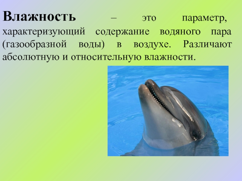 Слайд 23Влажность – это параметр, характеризующий содержание водяного пара (газообразной воды)