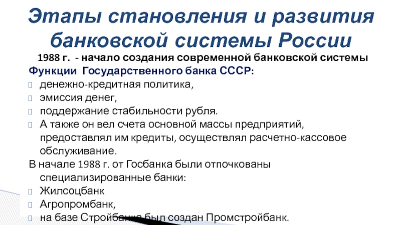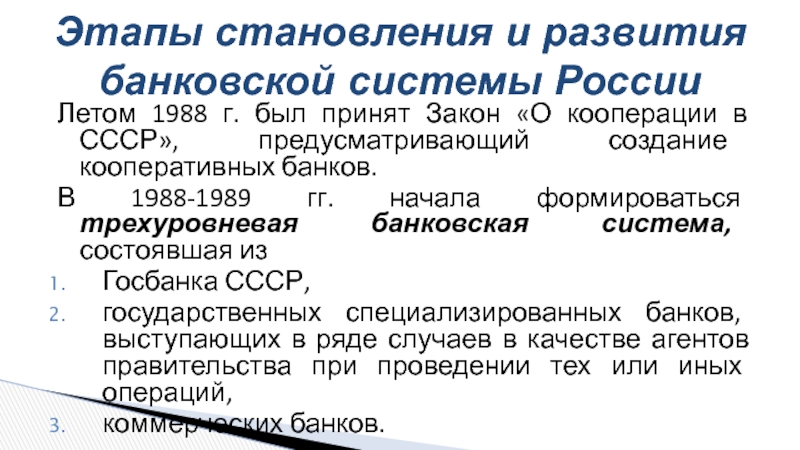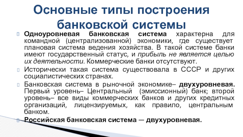 плановая система ведения хозяйства. В такой системе банки имеют государственный