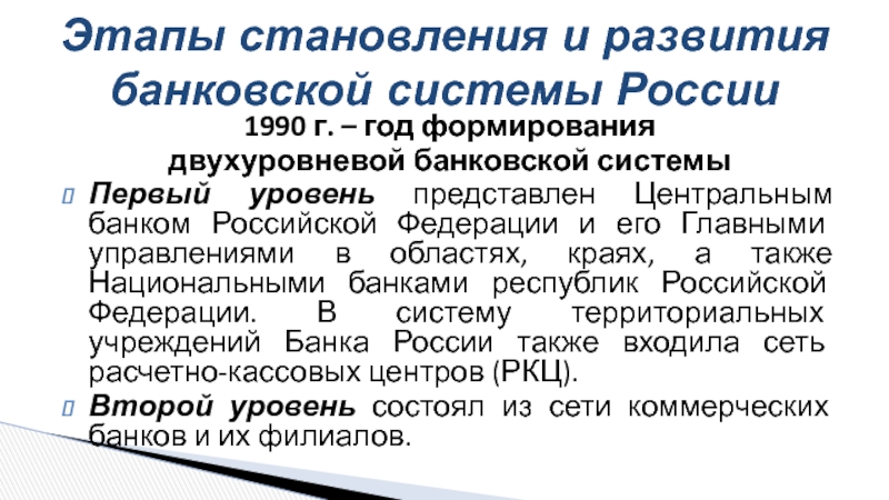 Банковская система в рыночной экономике– двухуровневая. Первый уровень– Центральный (эмиссионный) банк; второй уровень– все виды коммерческих банков и других кредитных организаций, лицензируемых, как правило, центральным банком.
