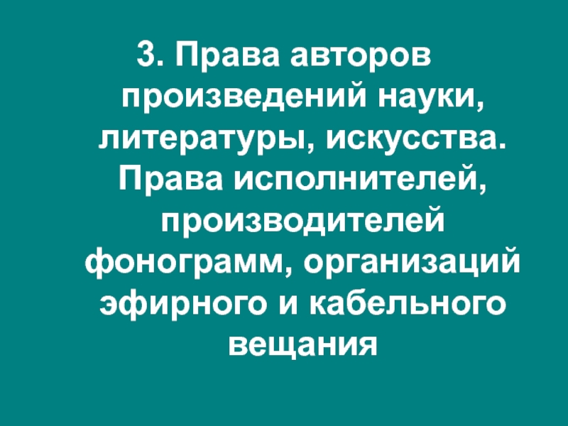 литературы, искусства. Права исполнителей, производителей фонограмм, организаций эфирного и кабельного вещания.