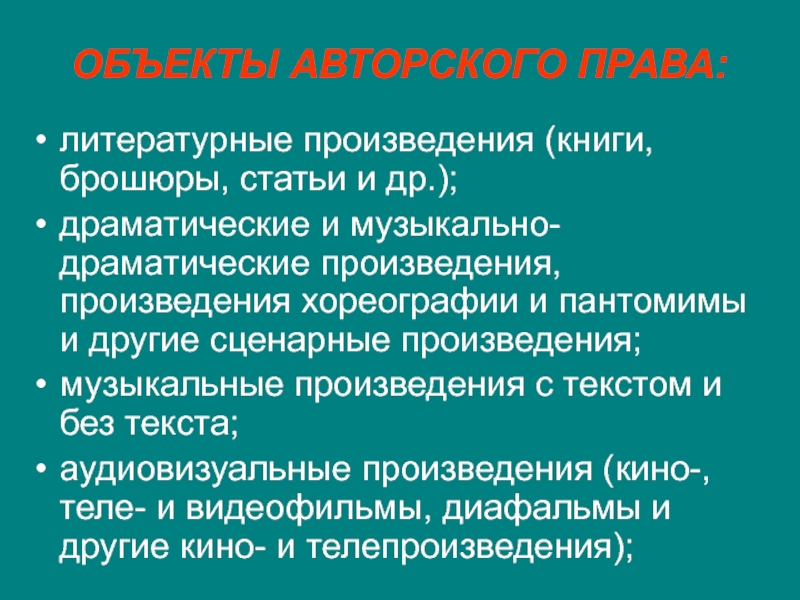 Слайд 18ОБЪЕКТЫ АВТОРСКОГО ПРАВА: