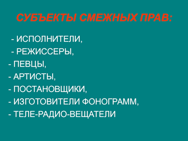 Слайд 20ОБЪЕКТЫ СМЕЖНЫХ ПРАВ: