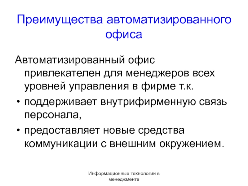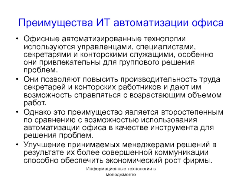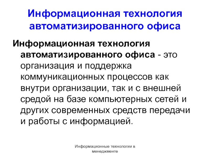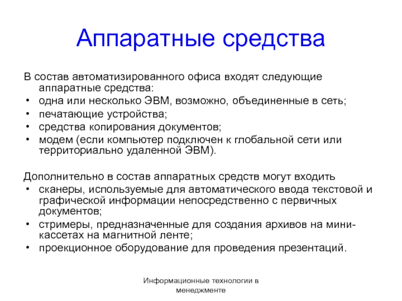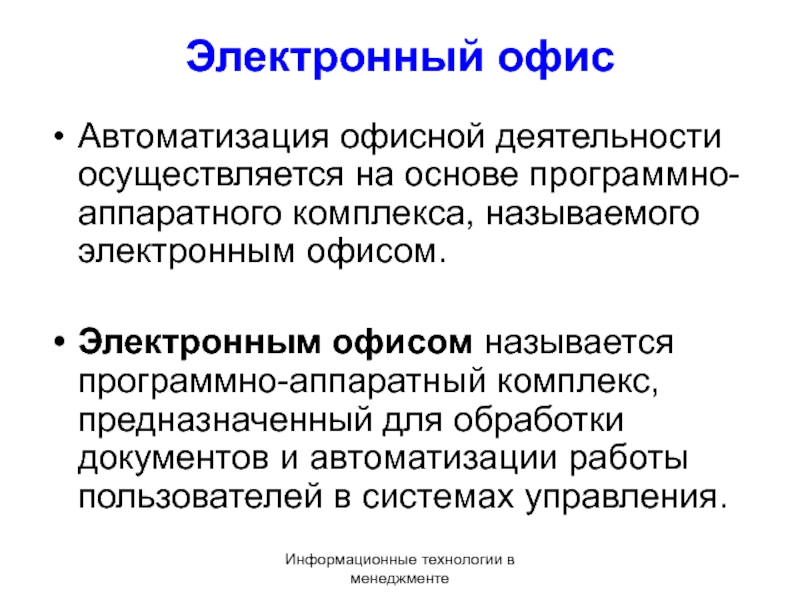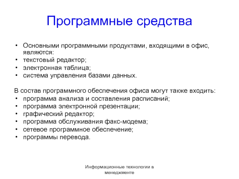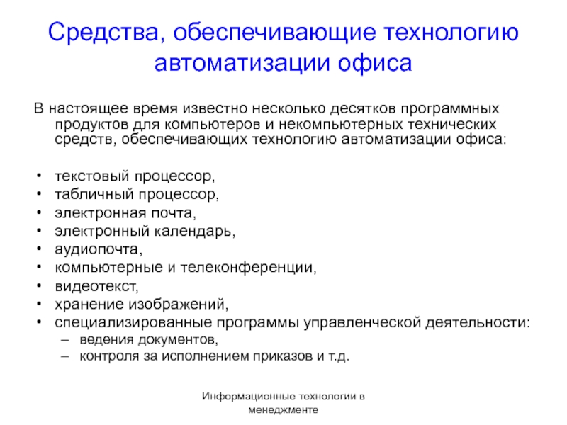 Слайд 8Основные компоненты ИТ автоматизации офиса