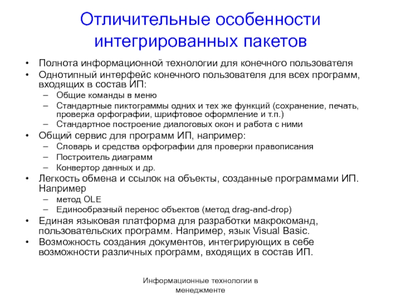 Возможность создания документов, интегрирующих в себе возможности различных программ, входящих в состав ИП.