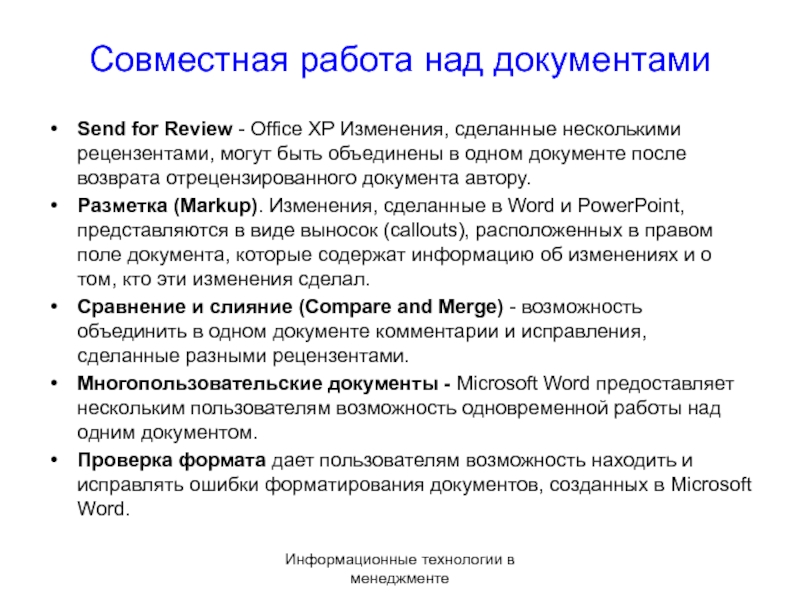 - Office XP Изменения, сделанные несколькими рецензентами, могут быть объединены