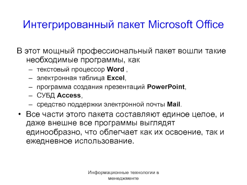 Все части этого пакета составляют единое целое, и даже внешне все программы выглядят единообразно, что облегчает как их освоение, так и ежедневное использование.