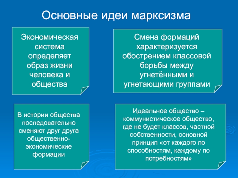 Идеальное общество – коммунистическое общество, где не будет классов, частной собственности, основной принцип «от каждого по способностям, каждому по потребностям»