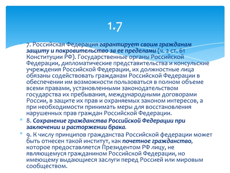 - определяют принадлежность лиц к гражданству Российской Федерации; осуществляют регистрацию приобретения или прекращения гражданства Российской Федерации в предусмотренных законом случаях;