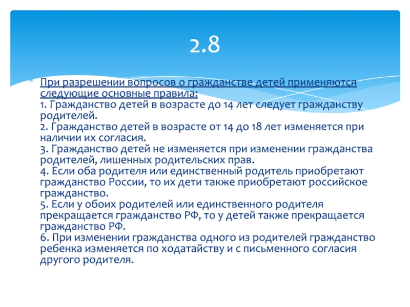 гражданства; отмены решения о приеме в гражданство; предоставления почетного гражданства. По всем названным вопросам Президент издает указы.