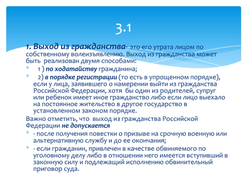 в гражданстве; разрешения на выход из гражданства Российской Федерации; двойного