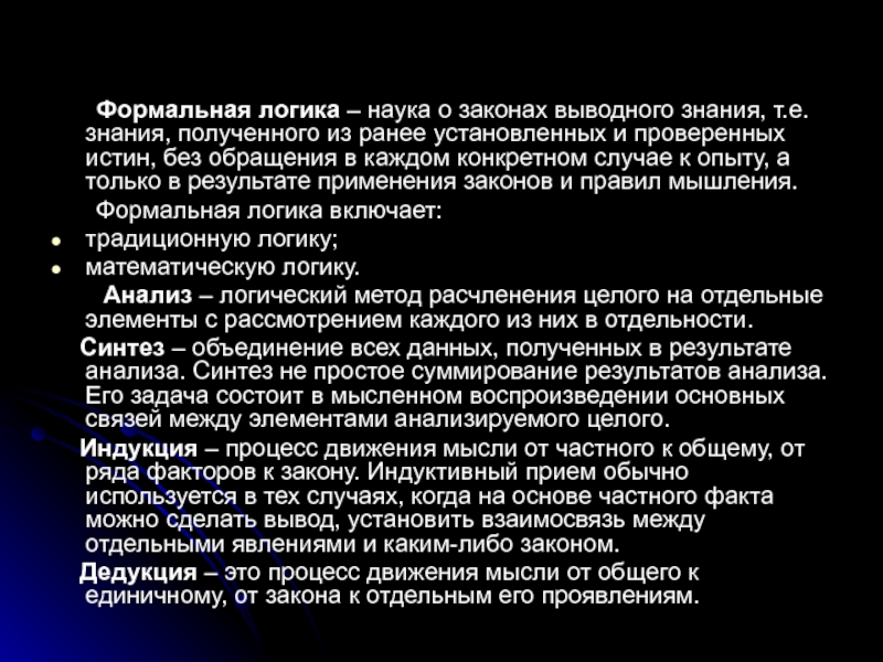 Слайд 4 Формальная логика – наука о законах выводного знания, т.е. знания,