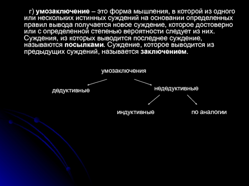 Слайд 14 г) умозаключение – это форма мышления, в которой из