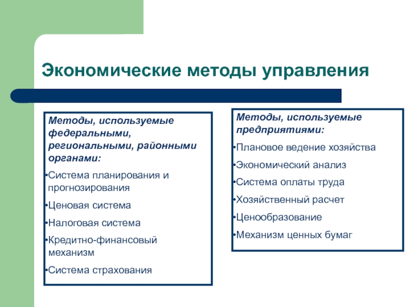 МЕТОДЫ УПРАВЛЕНИЯ представляют собой способы и приемы целенаправленного воздействия управляющей