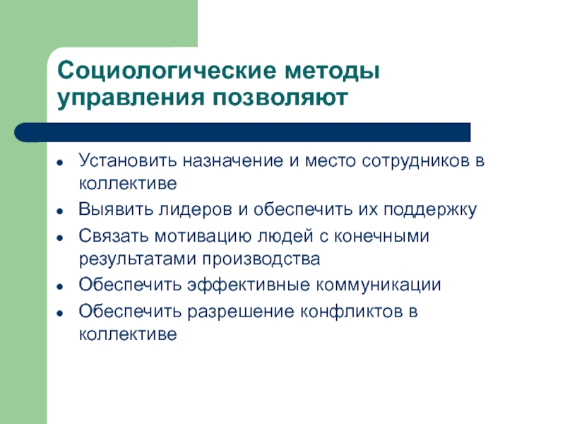 методы – направлены на группу людей и их взаимодействия в процессе совместной деятельности