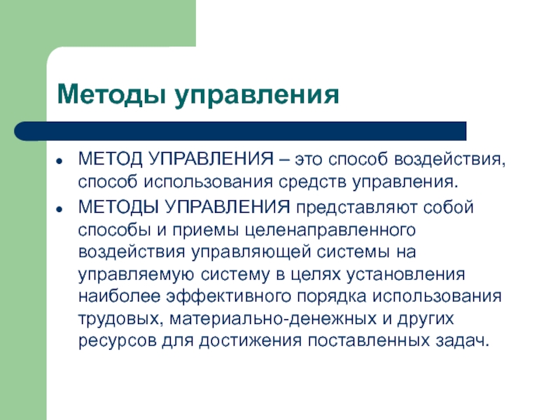 МЕТОД УПРАВЛЕНИЯ – это способ воздействия, способ использования средств