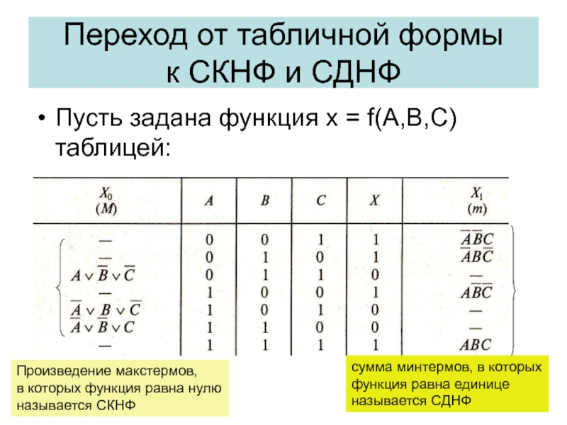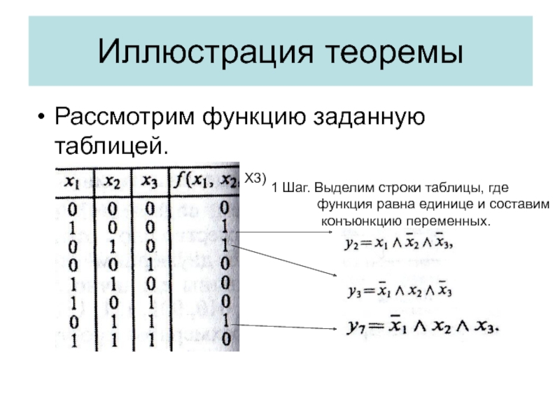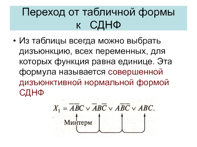 Слайд 31Из таблицы всегда можно выбрать дизъюнкцию, всех переменных, для которых