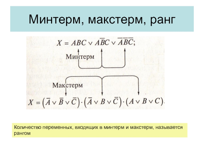 Слайд 28Минтерм, макстерм, ранг