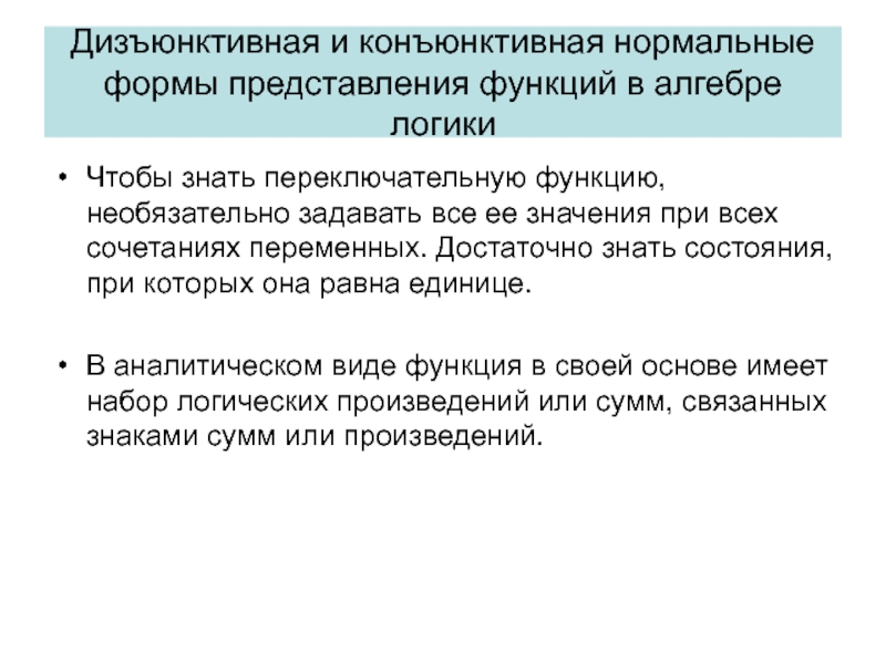 Слайд 26Дизъюнктивная и конъюнктивная нормальные формы представления функций в алгебре логики
