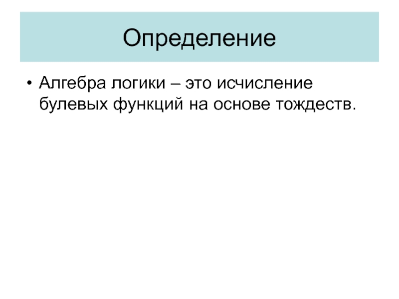 Алгебра логики – это исчисление булевых функций на основе тождеств.