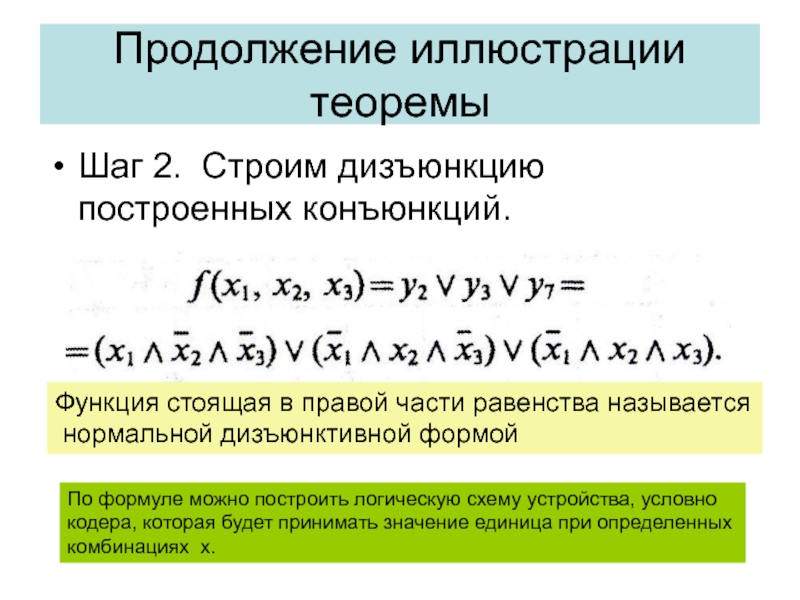 Слайд 25Шаг 2. Строим дизъюнкцию построенных конъюнкций.