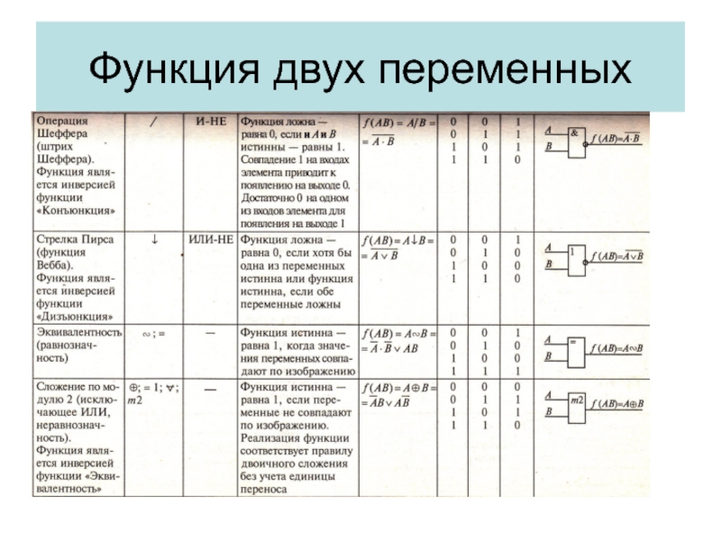 Если аргументы функции принимают только значения 0 или 1, то