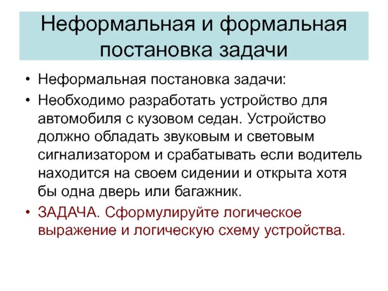 ЗАДАЧА. Сформулируйте логическое выражение и логическую схему устройства.
