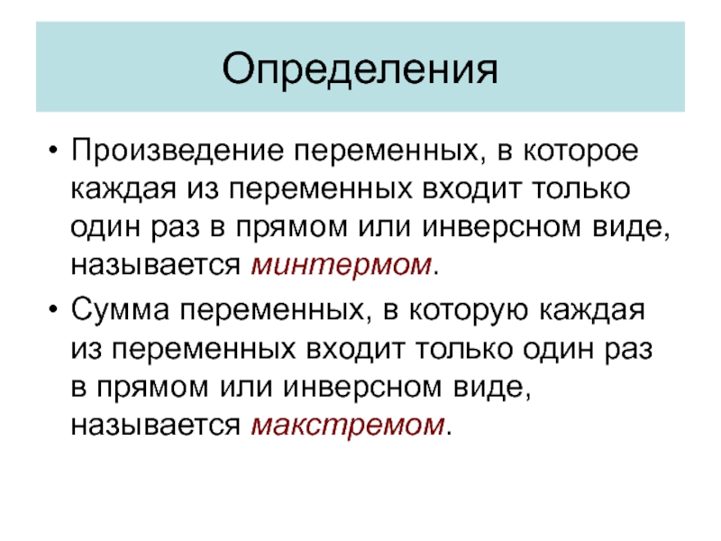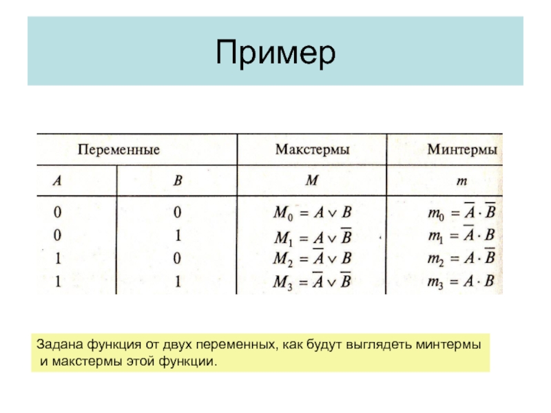 Переменные, входящие в макстерм, имеют инверсный вид по отношению к