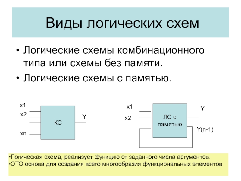 Слайд 4 Виды логических схем