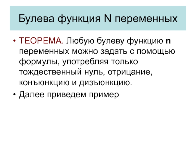 Слайд 23Булева функция N переменных