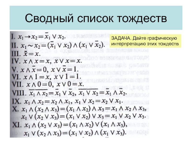 Слайд 15Сводный список тождеств