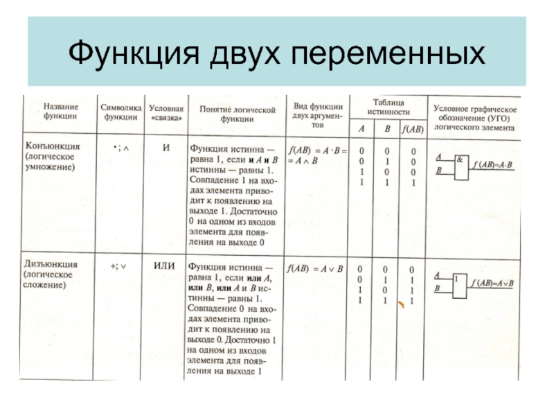 Слайд 9Функциональное изображение логических элементов с двумя входами