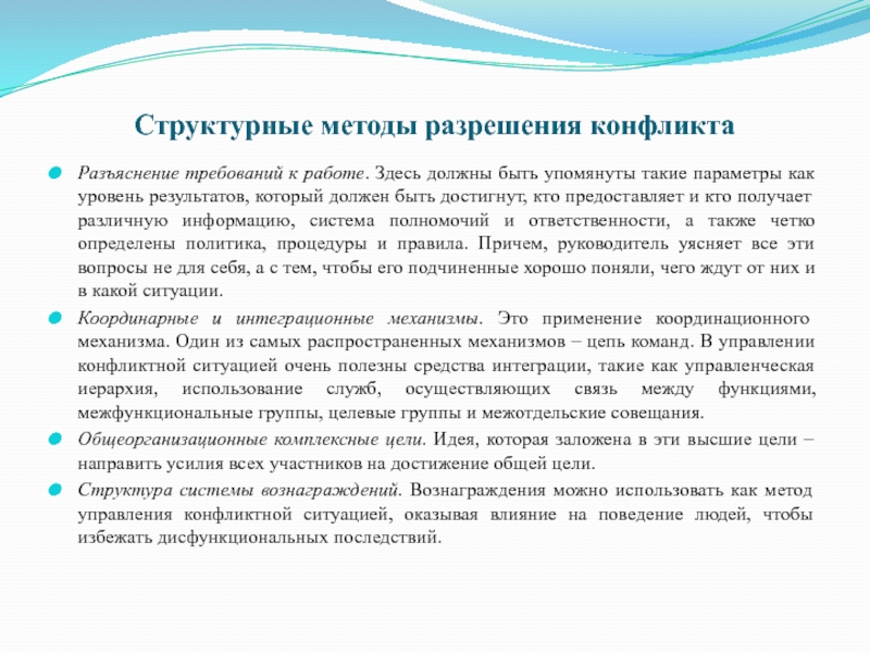 Структура системы вознаграждений. Вознаграждения можно использовать как метод управления конфликтной ситуацией, оказывая влияние на поведение людей, чтобы избежать дисфункциональных последствий.